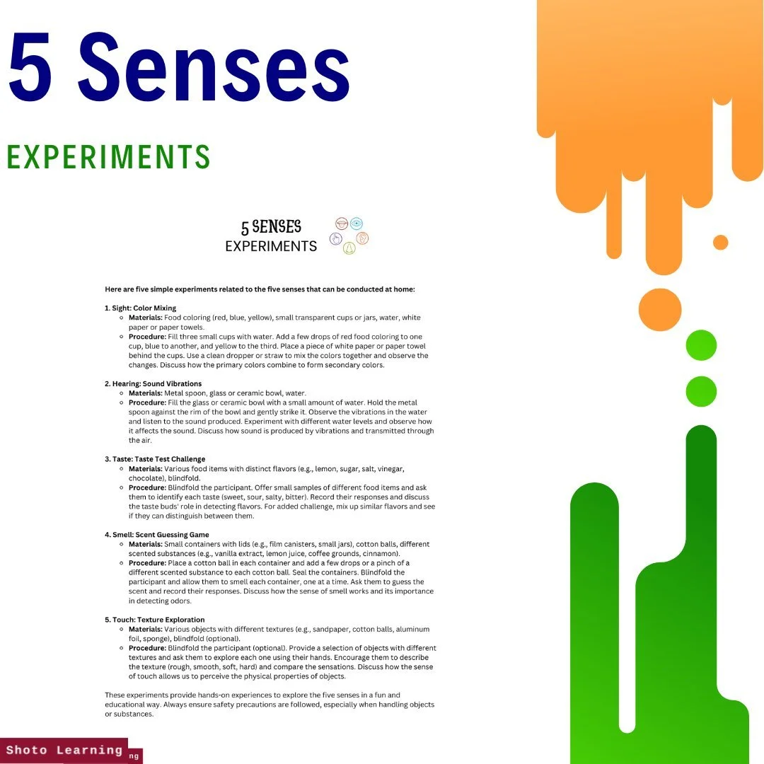 Unleash your curiosity and explore the wonders of the five senses with our "SenseLab Explorer: Home Experiments on the Five Senses" kit. Dive into a world of sensory exploration as you conduct five engaging experiments designed to stimulate your sight, hearing, taste, smell, and touch.